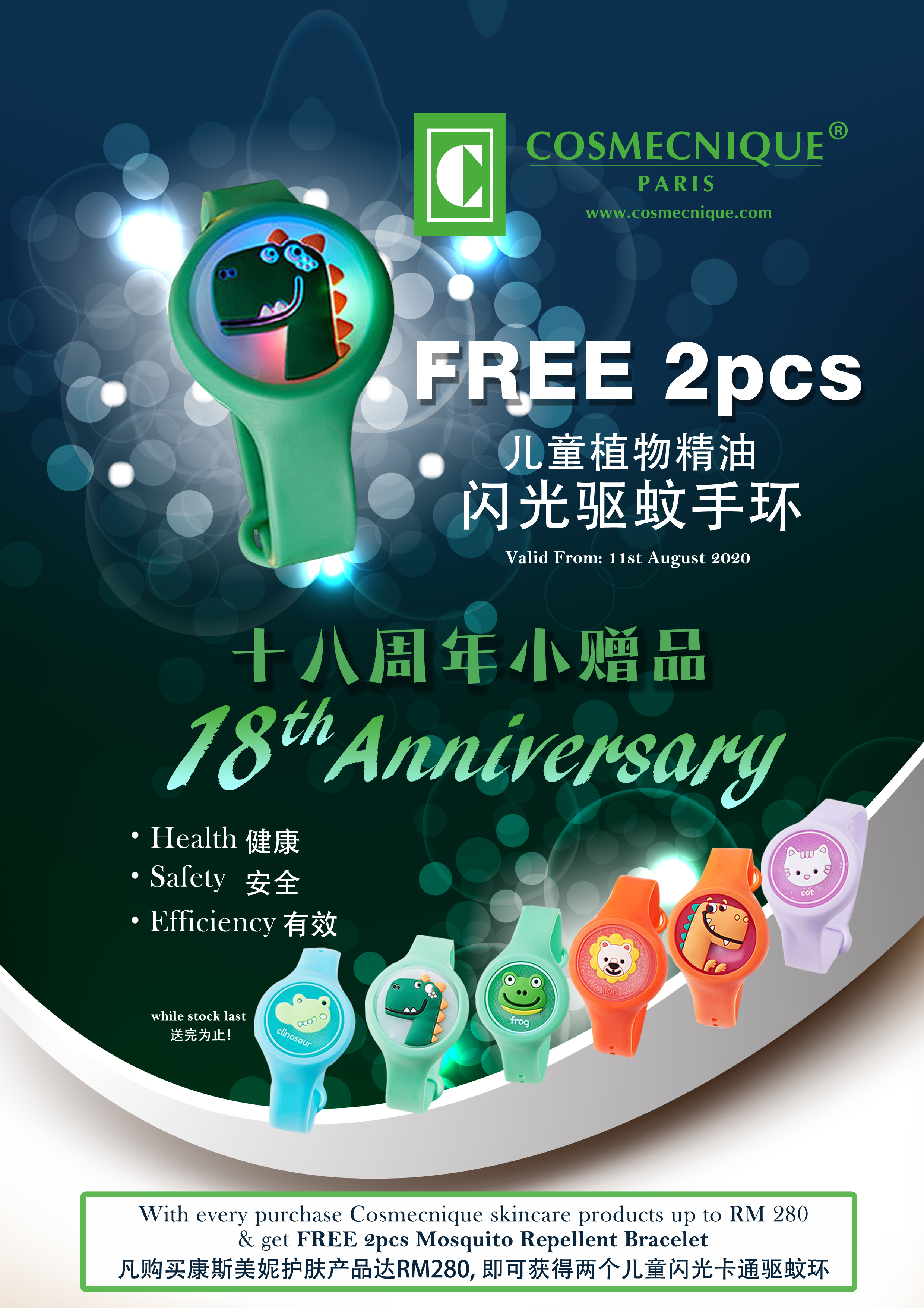 Monthly Promotion18th Anniversary FREE Moisquito Repellent Bracelet [August 2020]cosmecniqueAugust 26, 2020August 26, 2020 18th Anniversary FREE Moisquito Repellent Bracelet [August 2020]
